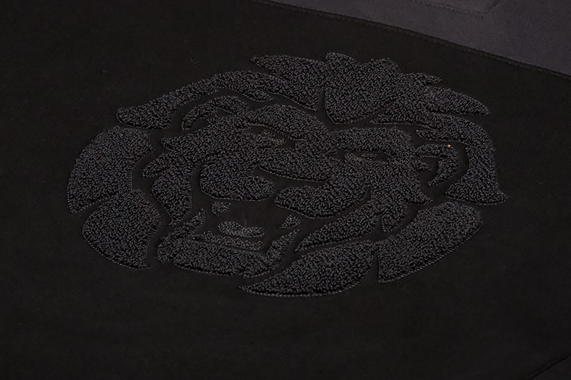 Schwarzer Löwenkopf als Frottee-Stickerei auf der Brust.