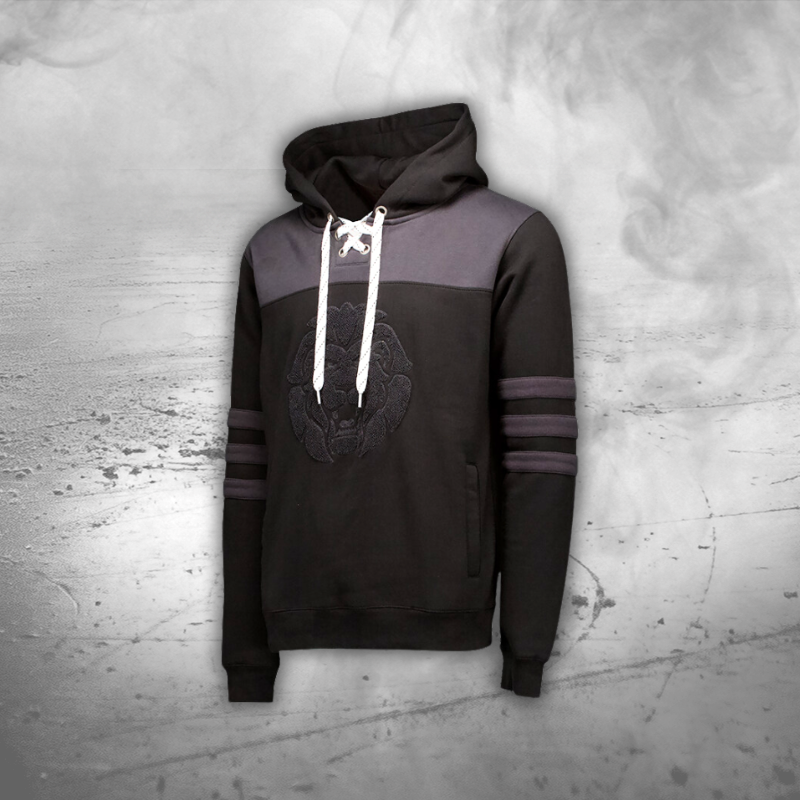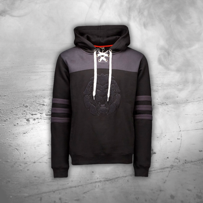 Qualitativ hochwertiger, kuscheliger, schwarzer Löwen-Hoodie, im Hockey Style für unsere Kleinsten.