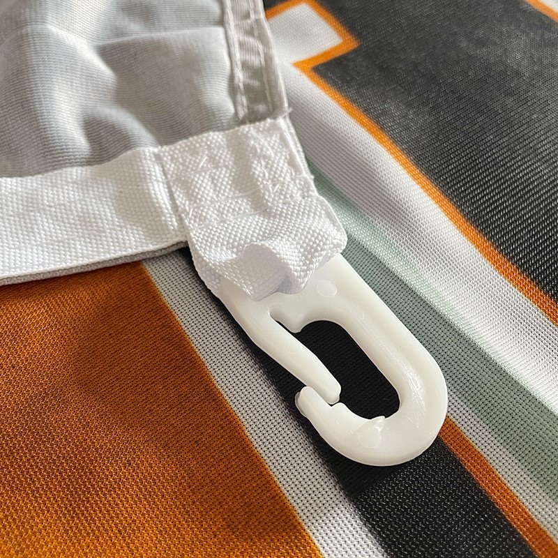 Hissfahne 150 x 100 cm, ringsum gesäumt, Mastseite links mit Besatzband und Kunststoffkarabinerhaken, schwer entflammbar nach Brandklasse B1/DIN 35,00 € vorrätig inkl. gesetzl. MwSt. / zzgl. mindest. 6,50 € Versand Kategorie: DIES+DAS Bestellnummer: 100077