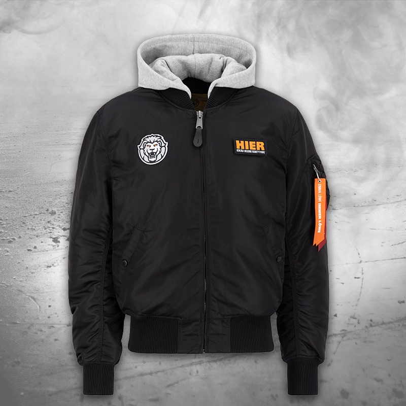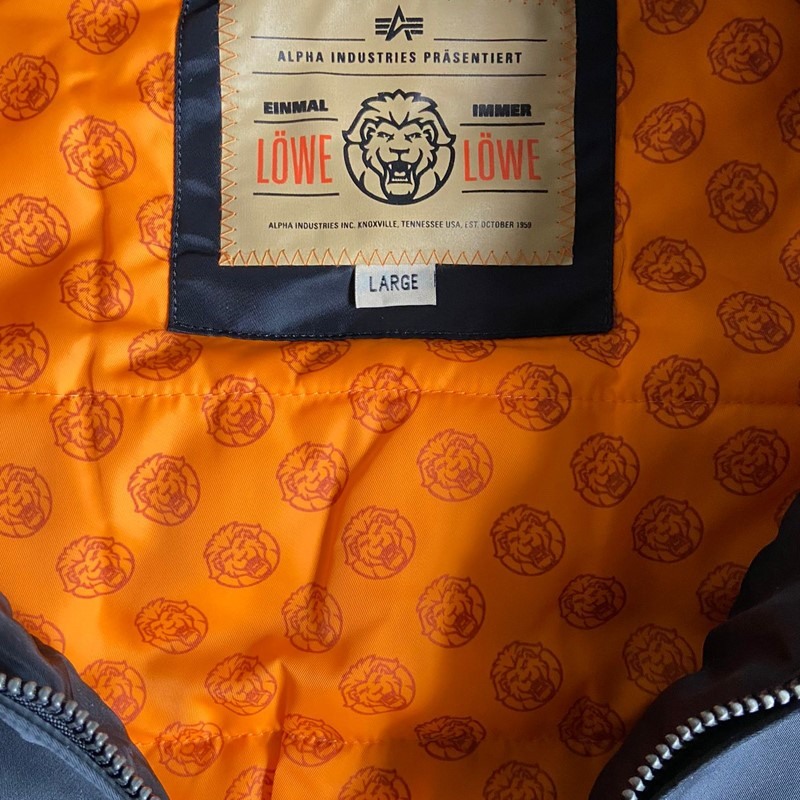 - Alpha x Löwen Partnerlabel auf der Innenseite der Jacke
